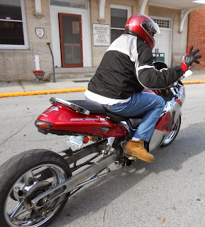 After our education we headed to another suggested spot. Bills Hot Dogs, since 1928 and easy to find. We were told that the correct order should be "a dog all the way" the yellow sauce was to spicy for Ruthie, I ate hers and she went back to get two "not all the way" I'll deal with the heartburn later. We sat on the bench outside eating our dogs as the customers filed by. One young man came on a unique (at least to us) motorcycle. It had a very long swing arm for the rear tire. I had only observed these on hill climb bikes although he said they were quite common in the area. Important facts, he got 6 dogs all the way, ate two and had the other 4 to go.